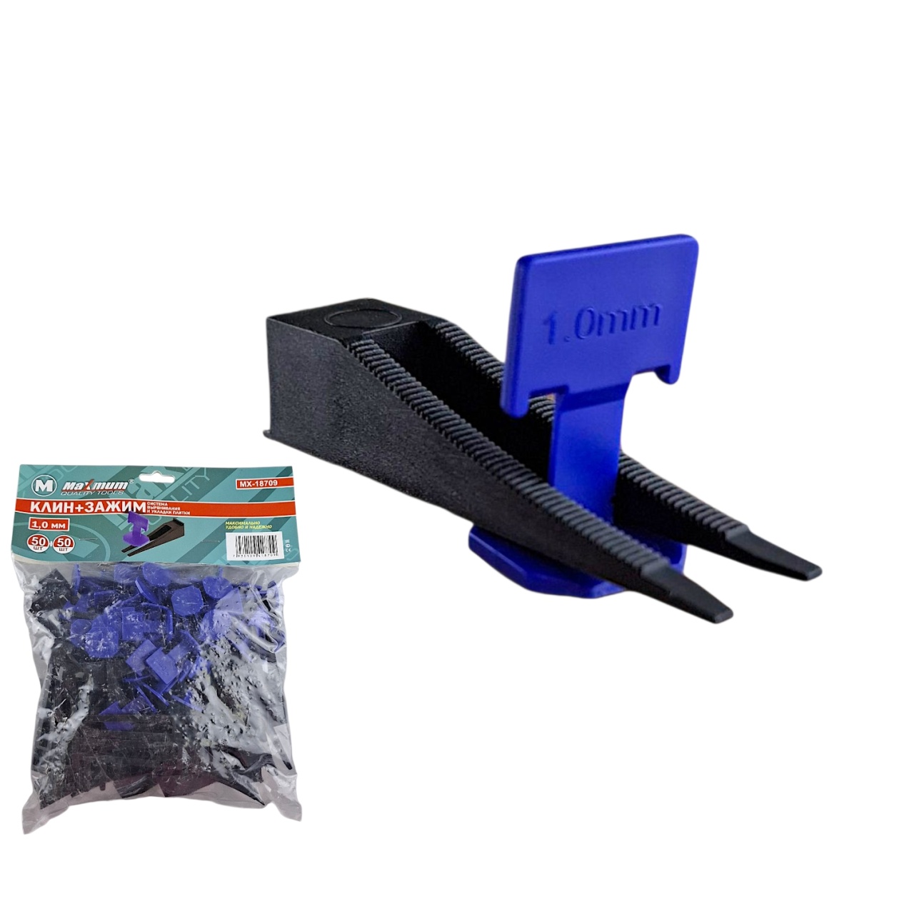 Система выравнивая плитки клин+зажим 1 мм от "MAXIMUM" — используется для качественной укладки керамической или керамогранитной плитки, который помогает создать идеально ровную поверхность без перепадов между плитками.