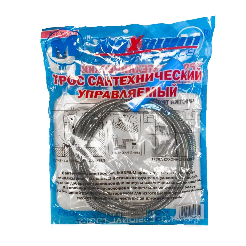 Трос для канализационных труб 3 м. предназначен для прочистки сложных участков с изгибами более 30 градусов. Хромированная стальная проволока имеет диаметр 5 мм, что позволяет использовать спираль в узких отводах или при поворотах труб диаметром от 75мм до 200 мм. Спираль на конце сантехнического троса создана для более эффективной прочистки засоров.