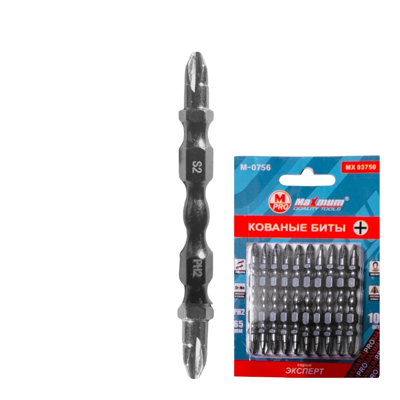 Биты кованые из стали S2 со шлицем PH2 65 мм от "MAXIMUM Quality TOOLS" M-0765 из серии "Эксперт" созданы для ручного и механизированного инструмента. Хвостовик 1/4" Е надежно крепится как в патроне шуруповерта, так и в ручной отвертке, обеспечивая безопасную работу.